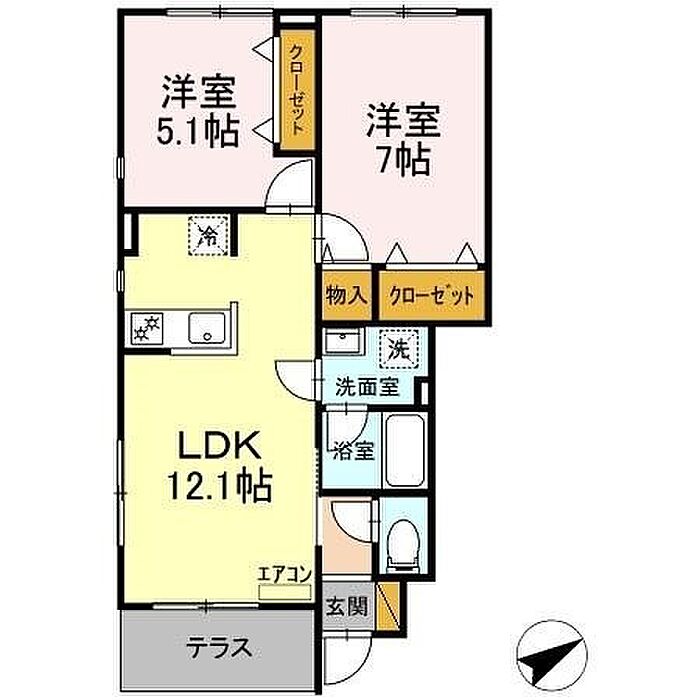 市川市稲荷木1丁目 アパート 2LDK/1階