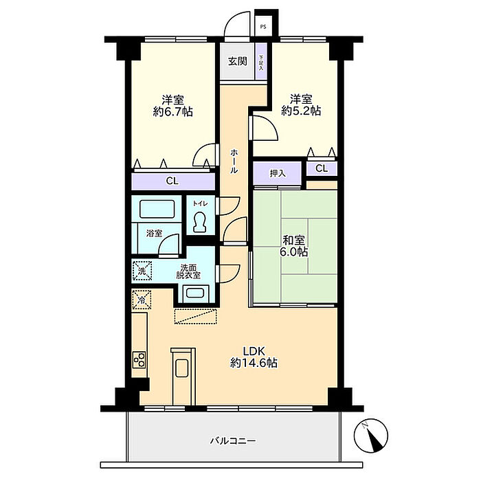 洋室 6.7帖