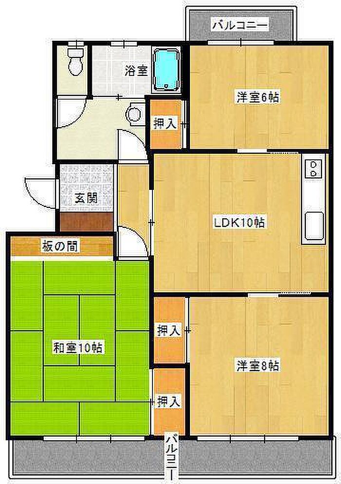 荷物を保管できる倉庫付。各居室6帖以上の広々とした3LDKです。水回りのスペースもゆったりと確保がで