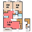 真岡市亀山 アパート 2LDK/2階