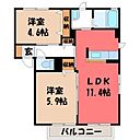 宇都宮市西川田本町3丁目 アパート 2LDK/2階