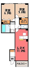 宇都宮市若松原3丁目 アパート 2LDK/1階