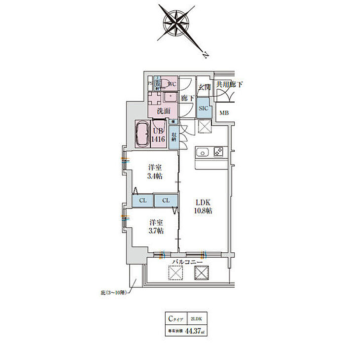 洋室 3.4帖)
