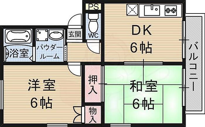 京都市山科区北花山寺内町 アパート 2DK/2階