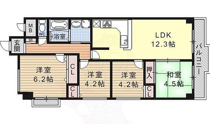 宇治市木幡西浦 マンション 4LDK/3階