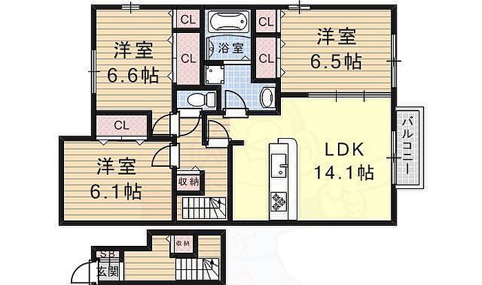大津市見世1丁目 アパート 3LDK/2階