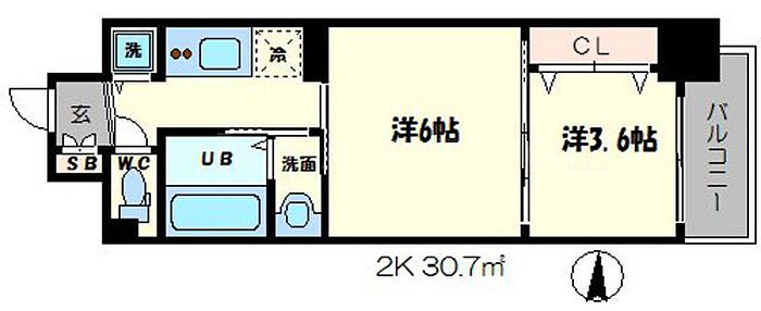 大阪市中央区南船場2丁目 マンション 2K/6階