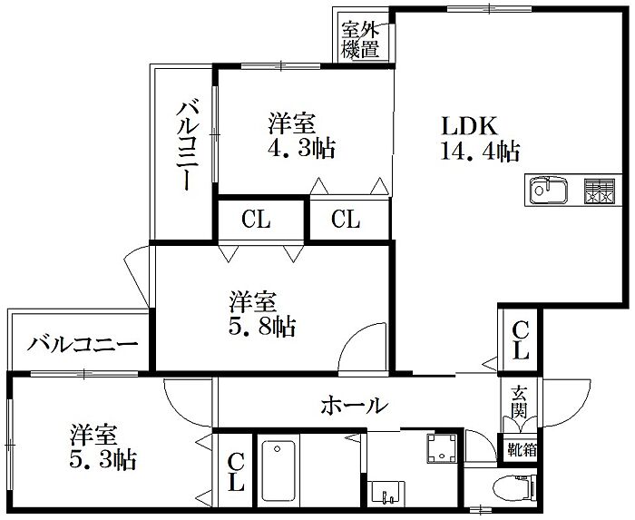 - コンロ三口
