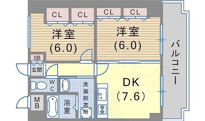 学生可 単身者可 高齢者可 法人可 ル・パレ神戸西館402号室、2DK、専有面積51.47平方メートル、山陽線神戸駅徒歩7分の立地でございます。
