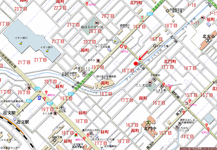 - JR函館本線 「 旭川駅 」 バス23分 北門19下車 徒歩3分