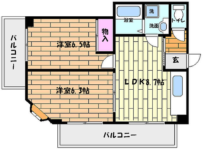 人気の高い成徳小学校・鷹匠中学校校区で、オール洋室の2LDKです。室内洗濯機置場に脱衣スペースもあります。南向きで明るいお部屋です。コンビニ・スーパー・郵便局が徒歩すぐで便利な環境です。