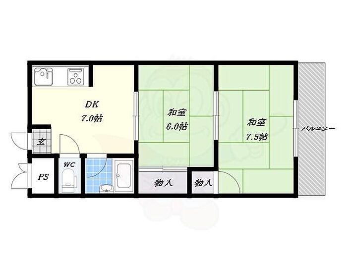 メゾン大和枚岡 2DK/1階