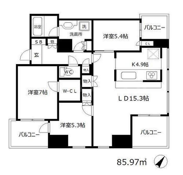 - 南面バルコニー
