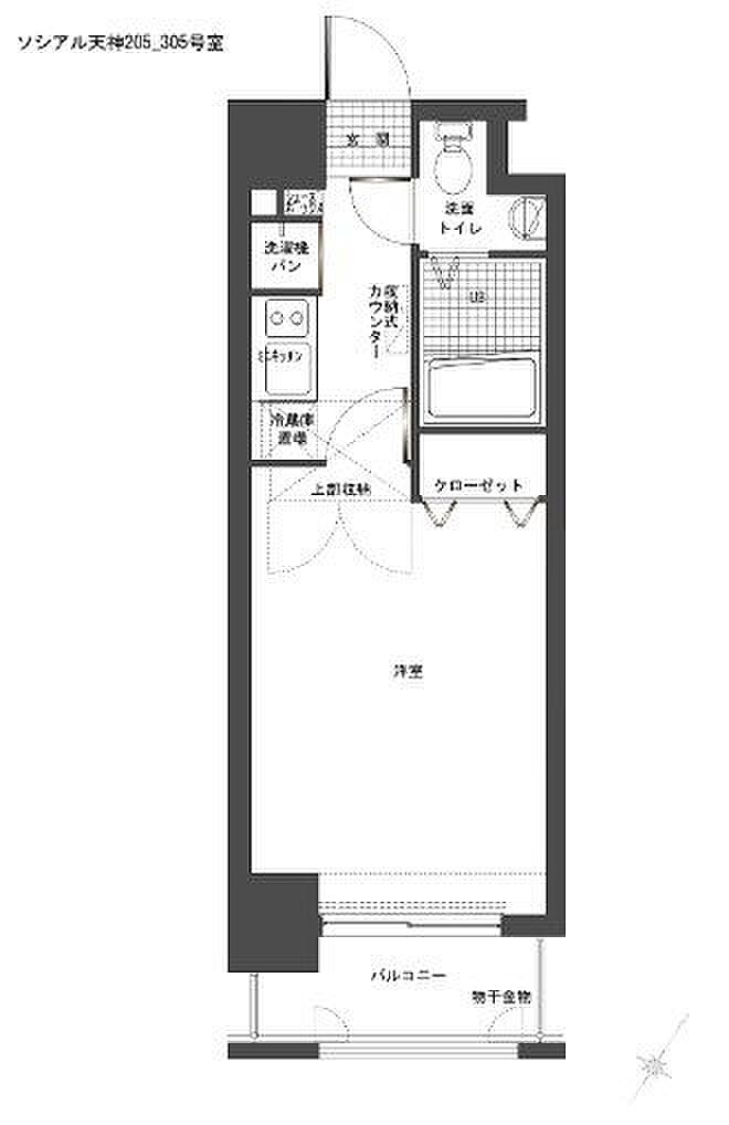ソシアル天神 304 1K/3階