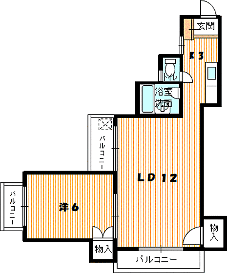 LD12帖バルコニー付の1LDK(角部屋)でました♪