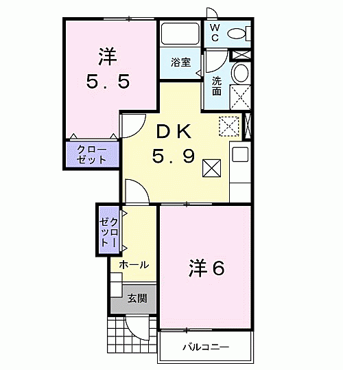 メゾン ソレイユ A 102 2DK/1階