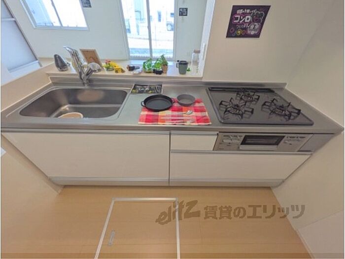【都市ガス・ネット無料】大和ハウス施工の賃貸住宅『D−ROOM』。3口コンロ付きのシステムキッチン、ワイド洗面台、一坪風呂、浴室乾燥機など、大和ハウスならではの豪華設備で快適にお住まいいただけます。・インターネット無料