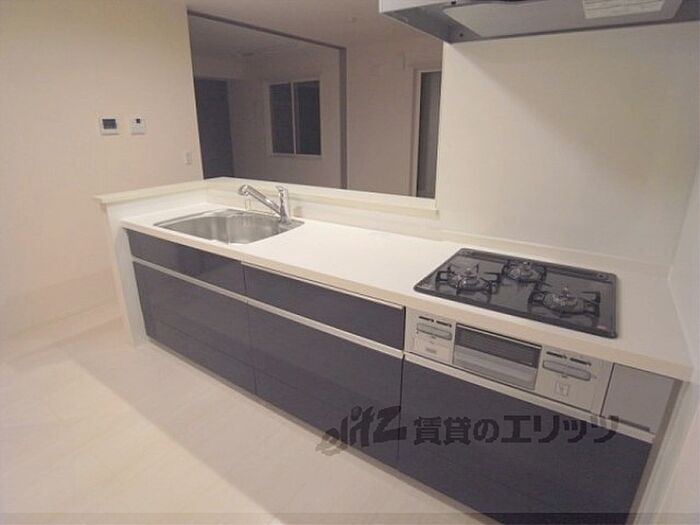 【人気のD-ROOM賃貸の2LDK物件】カウンターキッチンは3口ガスコンロつきでお料理もはかどりますね。インターネット無料物件です。浴室乾燥機つき、TVモニターホンあり、オートロックつきと設備充実。・インターネット無料