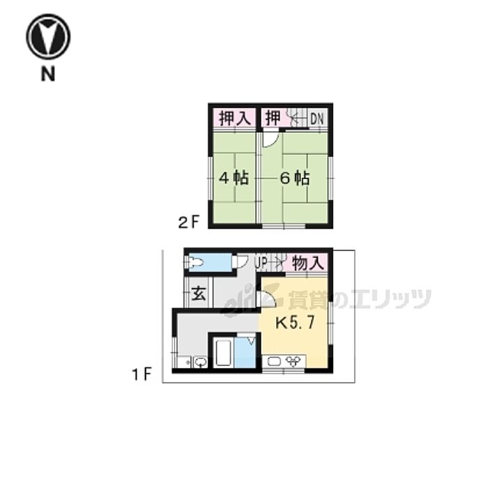 京都市山科区北花山市田町 一戸建て 2DK/1階