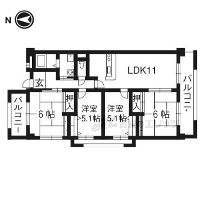 ユニライフ宇治六番館 615 4LDK/6階