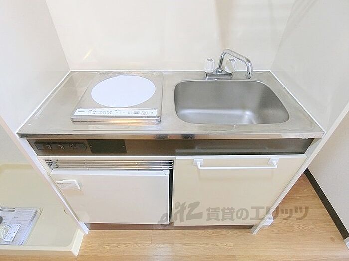 洗濯機は室内に設置できます。電気コンロ1口付いたシステムキッチンです。冷蔵庫も設備で付いていますよ。京阪の神宮丸太町駅まで徒歩8分。 京都大学正門前まで自転車で5分の賃貸物件です。・光ファイバーインターネット接続可