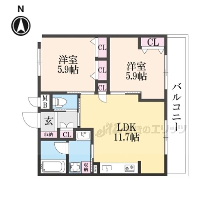 京都市山科区椥辻番所ケ口町 マンション 2LDK/4階