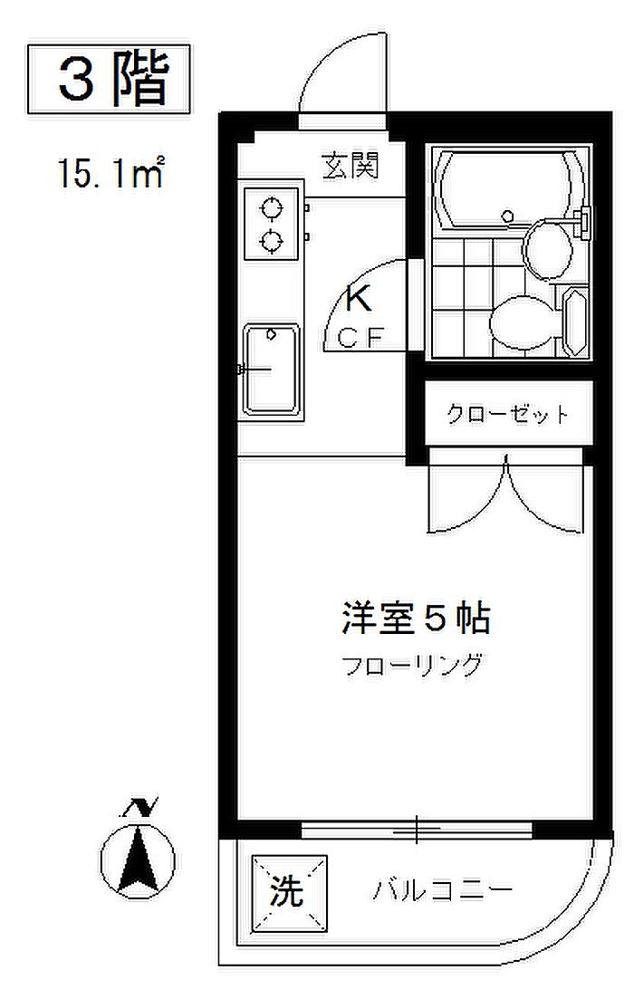 メイプルハイツ 301 ワンルーム/3階