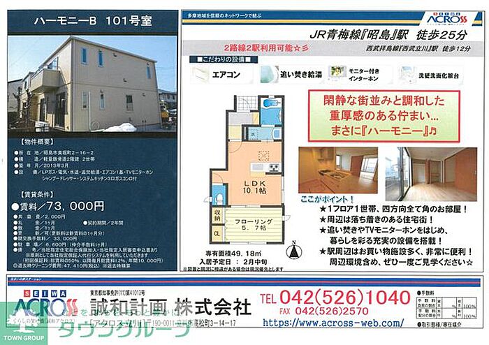オンライン接客、見学、契約、お気軽にお申しつけ下さい。地元不動産屋との物件共有によりお部屋探し全面サポート、新築物件、デザイナーズ物件、分譲賃貸、ペット可物件、楽器可物件、UR賃貸住宅、随時新着情報満載です。現地お待ち合わせやお家賃交渉、礼金交渉等お気軽にご相談ください。地元不動産会社との物件共有によりご満足いいただけるお引越しを全面サポート致します。タウンハウジング昭島店