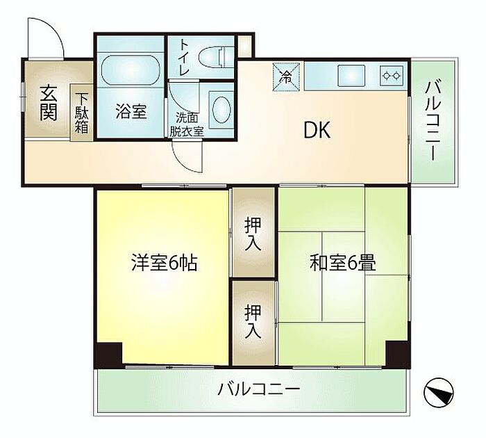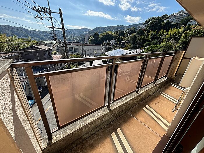 見晴らしの良いワイドなバルコニーが特徴の2DK。バス・トイレ別。来宮駅まで約670m(徒歩約9分)