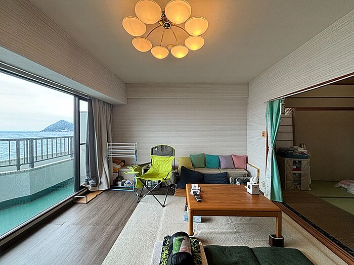 目の前に広がるオーシャンビューが楽しめるリゾートマンション。大型の家具家電付きです(撤去相談可)。