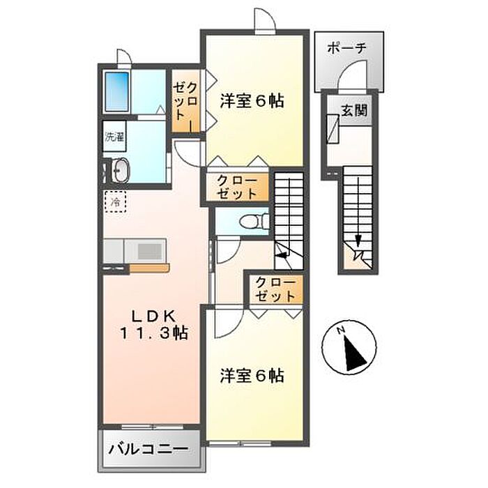 ヒルサイド緑ヶ丘B 2LDK/2階