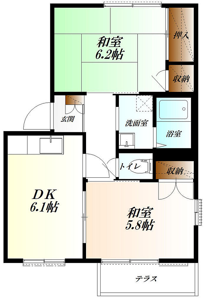 グリーンハイツE棟 2DK/1階