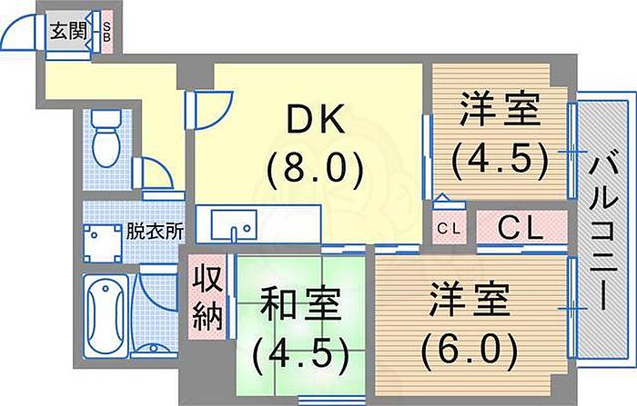 無 三宮パークハイム、三ノ宮駅徒歩8分、3DKの居住環境でございます。