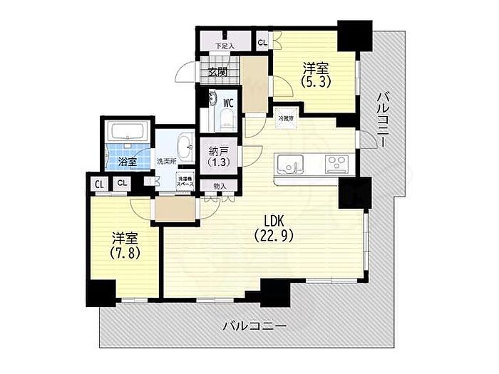 無 プラウドタワー神戸県庁前、2SLDK、元町駅徒歩6分でございます。