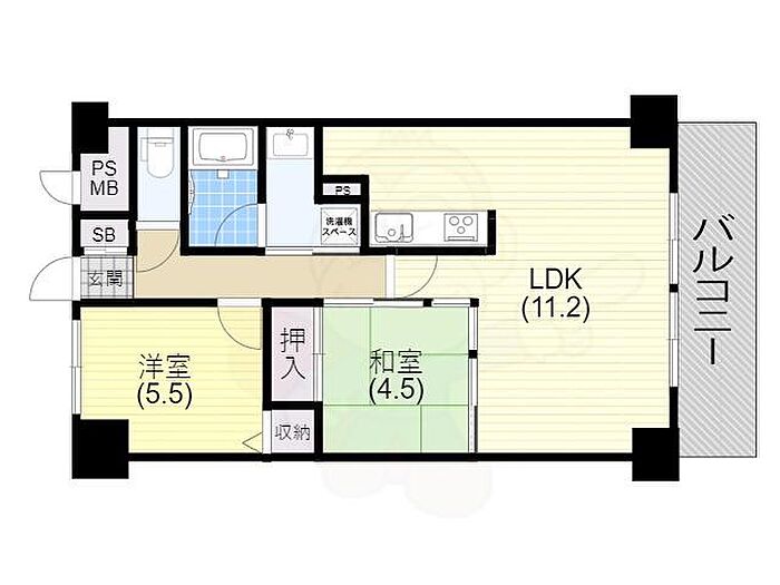法人可 ロイヤル神戸池田広町204号室、2LDK、専有面積54.45平方メートル、山陽線新長田駅徒歩20分の立地でございます。