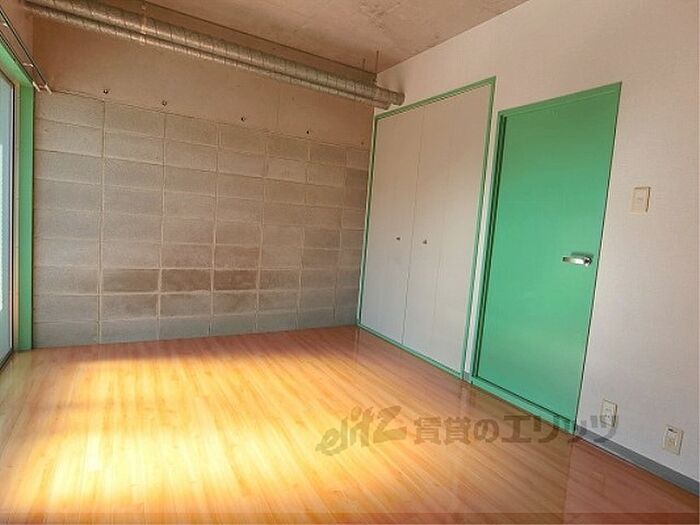 同志社大学まで自転車で9分で通える賃貸マンション。室内はコンクリート打ちっぱなしのオシャレな壁になっています。一口の電化コンロが設置済みで、洗濯機は室内に設置可能です。オートロックも完備。・インターネット無料・家賃保証料(月額):1200円