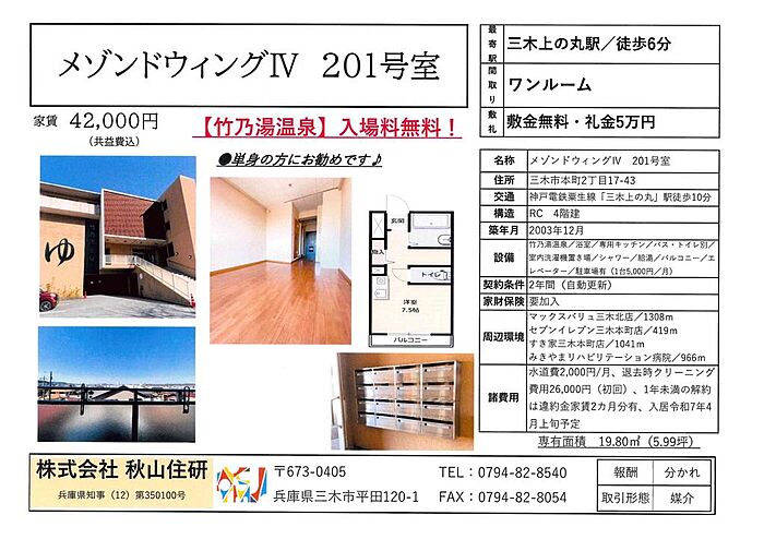 竹乃湯温泉入場料無料(^^♪礼金敷金0円!!一人暮らしの方にお勧めです♪