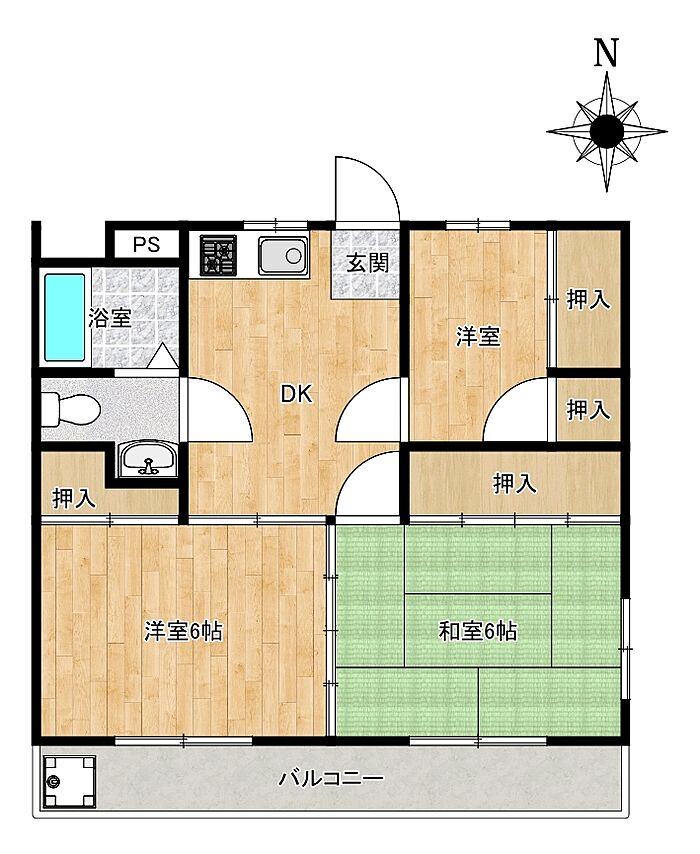 パステルハウス 201 3DK/2階