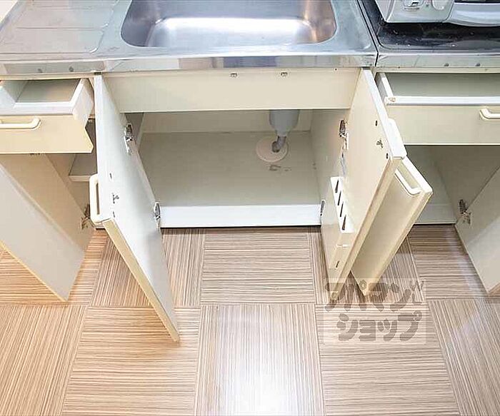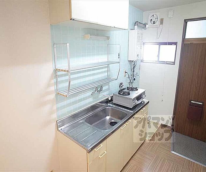 男子学生限定物件、自炊もらくらくの広めのキッチン。