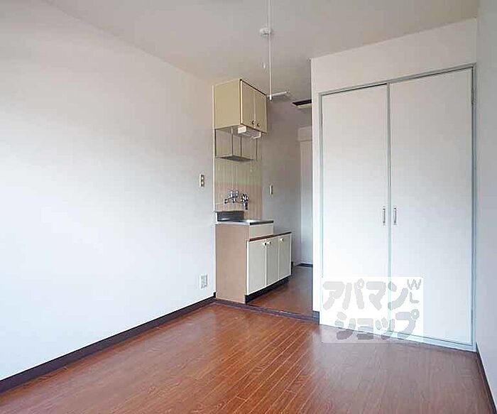 2口ガスコンロ設置可能。南向きで南側は駐車場になっており、日当たり良好です。収納は大き目の押入サイズタイプ。1階のお部屋はバストイレセパレート、2階以上のお部屋はユニットバスとなっております。 京都大学の学生さんにおすすめです。 京都のお部屋探しはアパマンショップ京都にお任せ下さい。