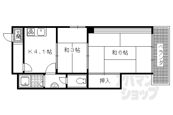 地下鉄北山駅まで徒歩9分の2Kです。更新料ナシ。コンビニ、スーパーなど近くにあって便利ですよ。光ファイバー対応しています。