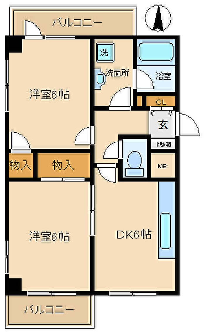 尼崎市浜田町、平成3年築、2DKマンション、角部屋