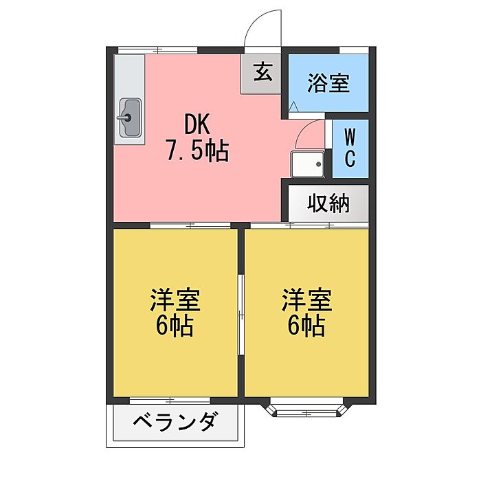 ふじハイツF棟 2DK/2階