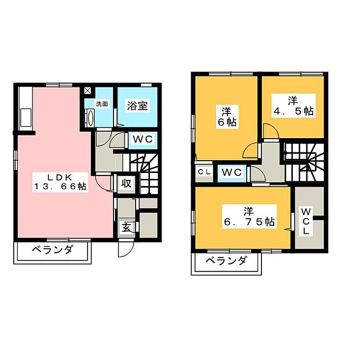 高崎問屋町駅まで徒歩12分。広めのWCL付で便利ですね。1階と2階どちらもベランダついてます。