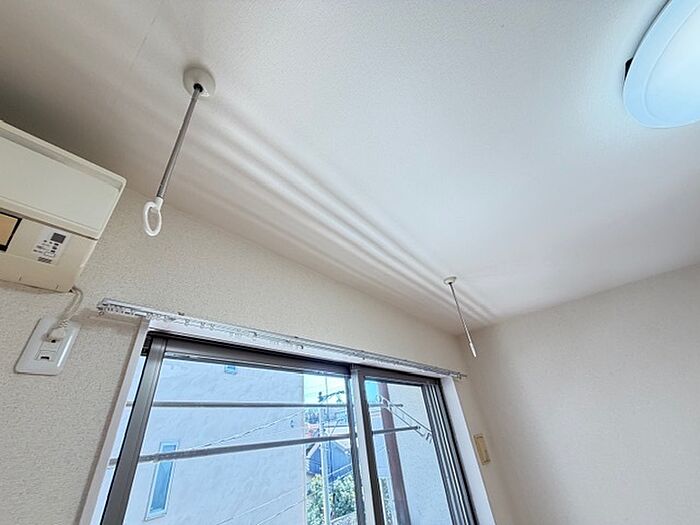 洋室は広めの8帖。室内物干しがあって洗濯物干すのも安心便利です。お部屋探しはミニミニへお気軽にご連絡ください。