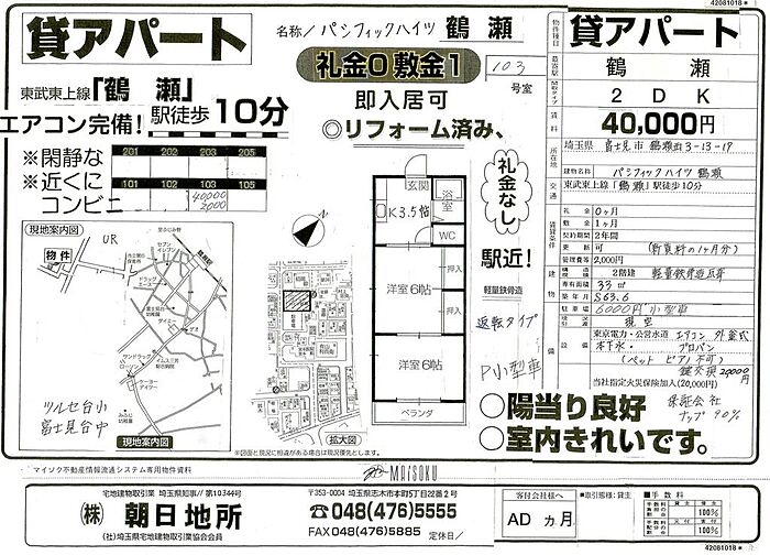 パシフィックハイツ鶴瀬 103 2K/1階