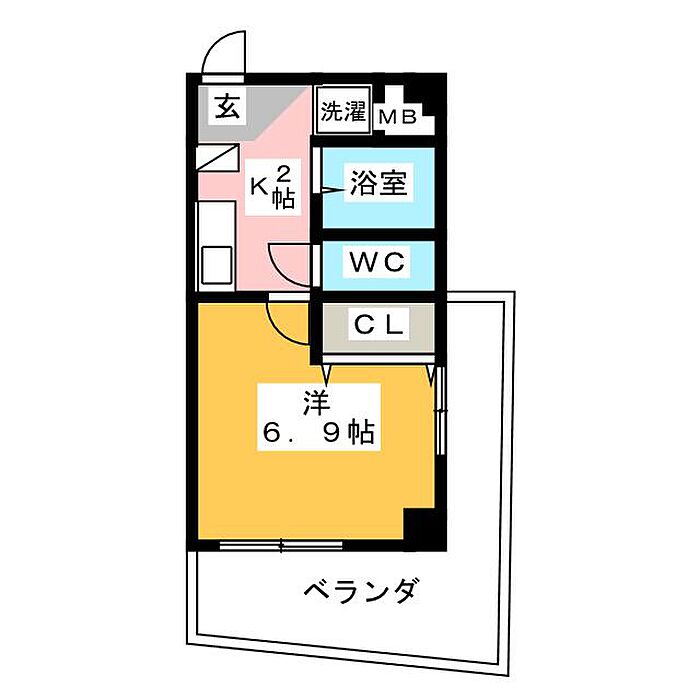 クレール車道 1K/2階