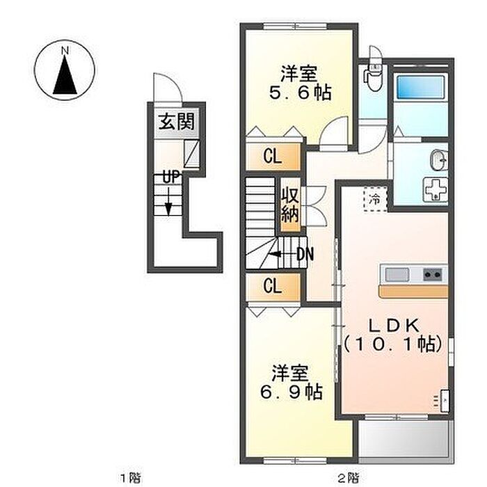 グリーン ドエル 205 2LDK/2階