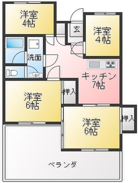 サンデンハイツ 4DK/1階