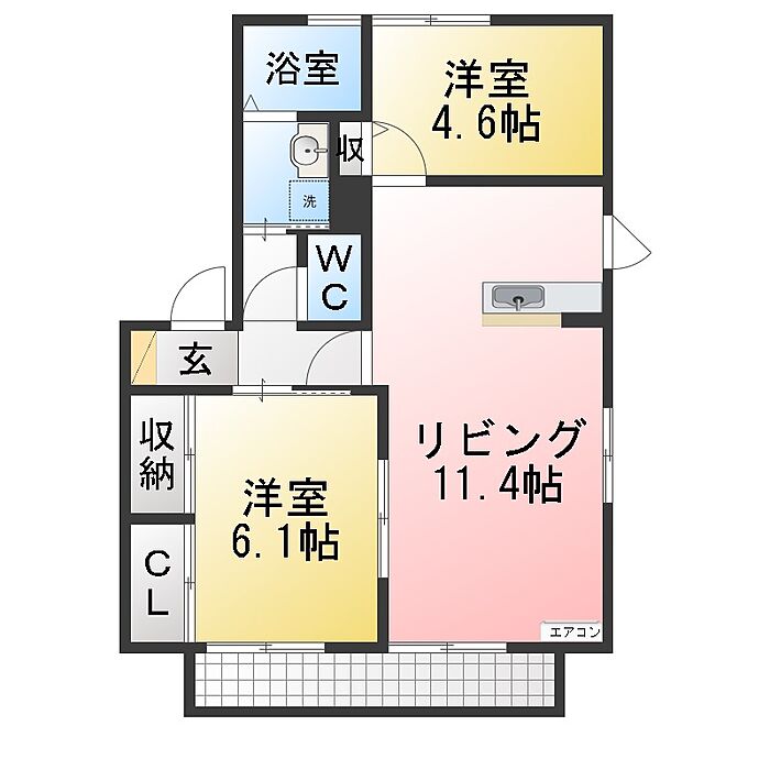 エクレール D棟 2LDK/1階